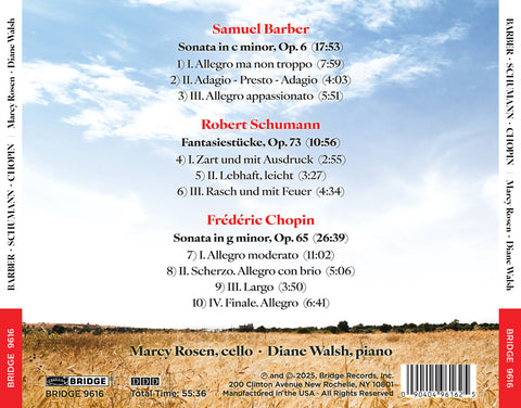 BARBER, SCHUMANN, CHOPIN: MARCY ROSEN, CELLO; DIANE WALSH, PIANO